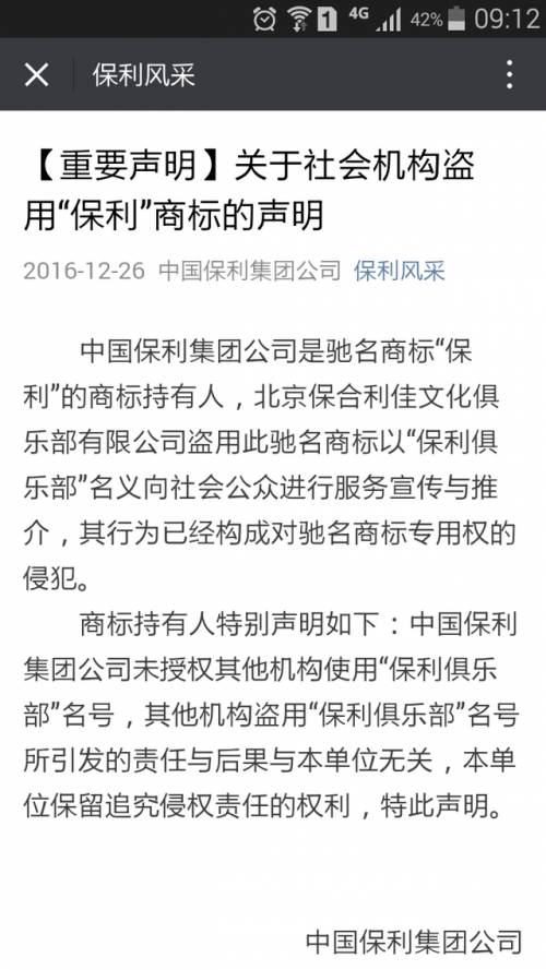 今天早上,保利发布声明,撇清了和保利俱乐部的关系。