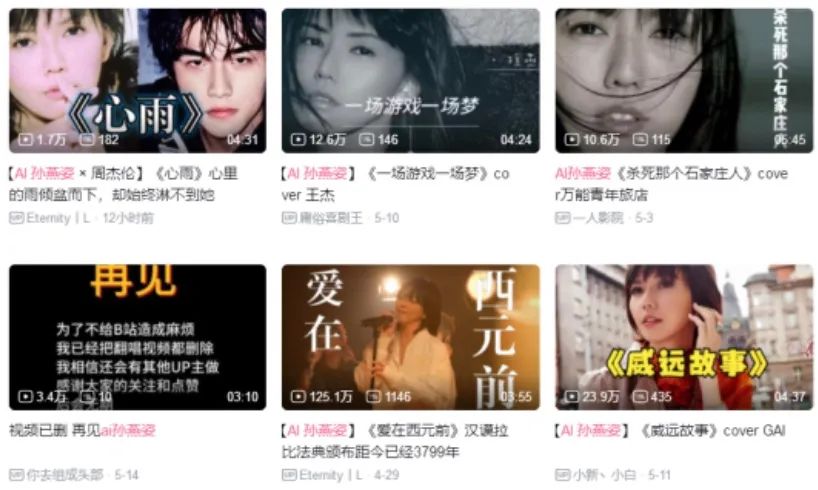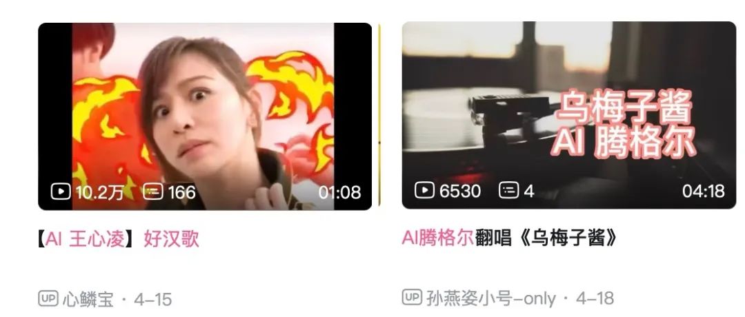 今年上半年,不知从何时起,B站开始不间断涌现出成批AI 歌手翻唱同行金曲的“整活视频”,这边厢AI王心凌演绎了与她可爱气质相去甚远的《好汉歌》,那边厢AI腾格尔抢先在正主前完成了对《乌梅子酱》的硬核翻唱。