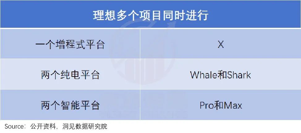 研发来说,理想未来的多元化产品,将在1个增程式平台、2个纯电平台,2个智能化平台上进行......每款产品,都有自己的小家庭要顾,资源不可避免要分散。