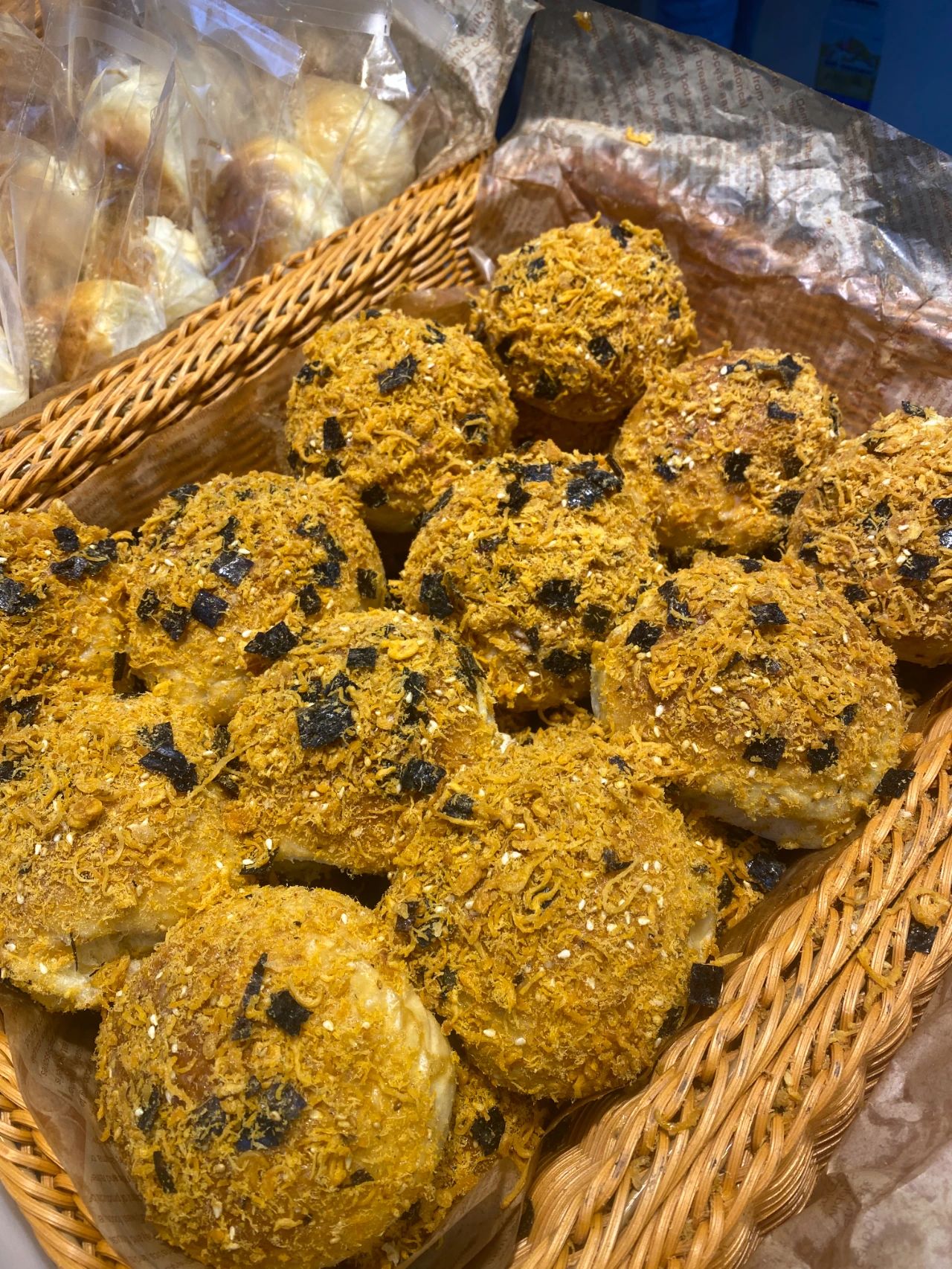 这些面包与早年流行的蜂蜜黄油面包外形类似,但搭配了不同馅料。以涤生在日照开的2元面包店为例,除了红枣、紫薯、黑米、核桃等常规配料外,还有芋泥、麻薯、奶酪、巧克力、蔓越莓等网红配料。最早火起来的济南2元面包店中,则有芝士、肉松等配料。