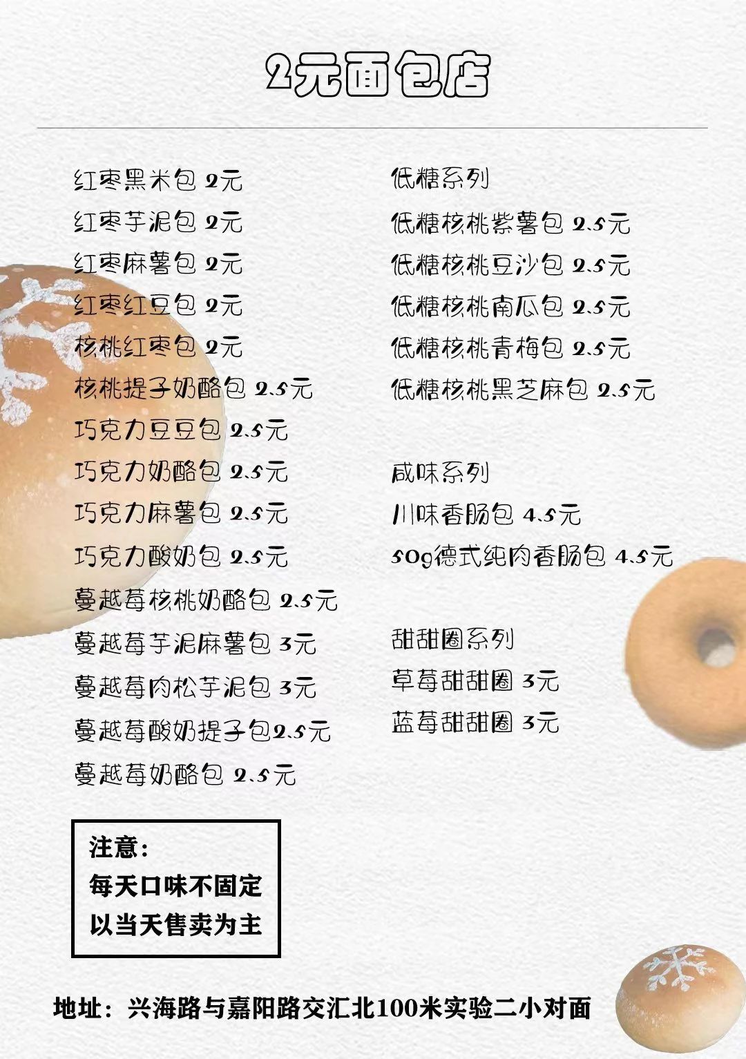 日照2元面包店菜单,图片来源:受访者供图
