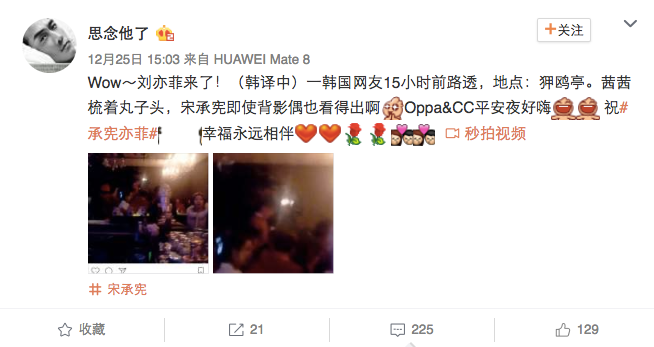 2、刘亦菲被曝赴韩陪宋承宪过圣诞