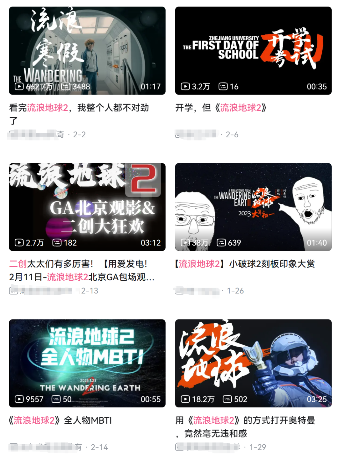 从《流浪地球》到《流浪地球2》,龚格尔也明显察觉到用户的这种变化。“现在的用户有活力、更主动、也更有创造力。第一部的时候用户更多的是文字讨论, 等到第二部我已经能明显感受到观众们的二创热情,他们会自发选择影片当中的元素,重新创造成他们喜欢的剧情走向,就像一场非实时的游戏互动。”
