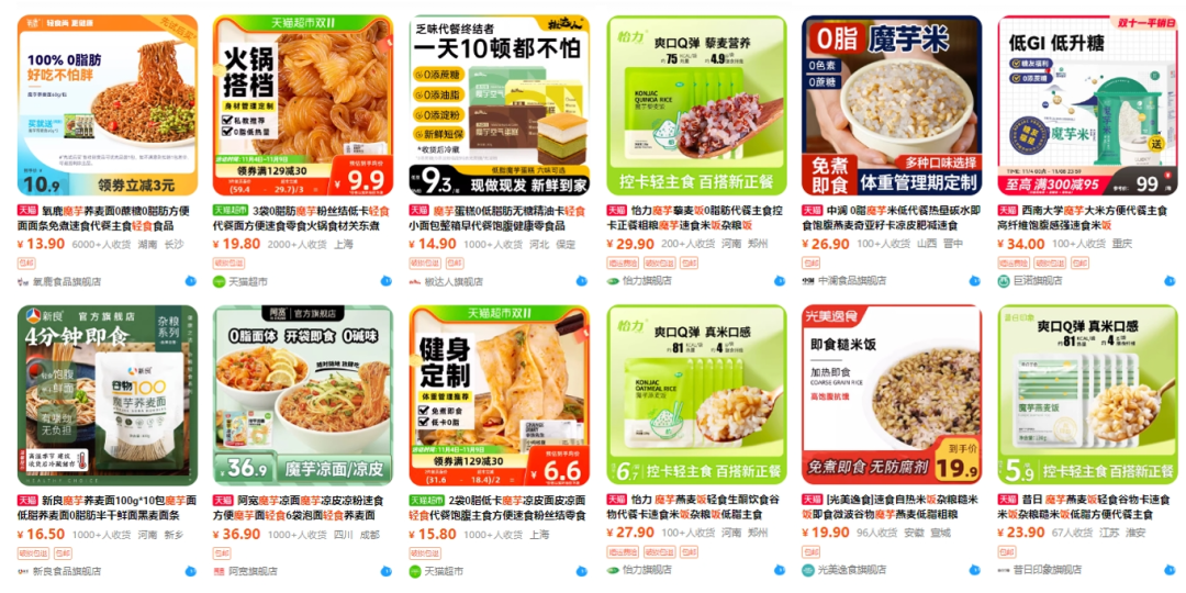 与此同时,魔芋面、魔芋粉、魔芋蛋糕等主食形态也开始从餐饮门店转向零售终端侧重,在淘宝、抖音等电商平台都有亮眼的销量表现。