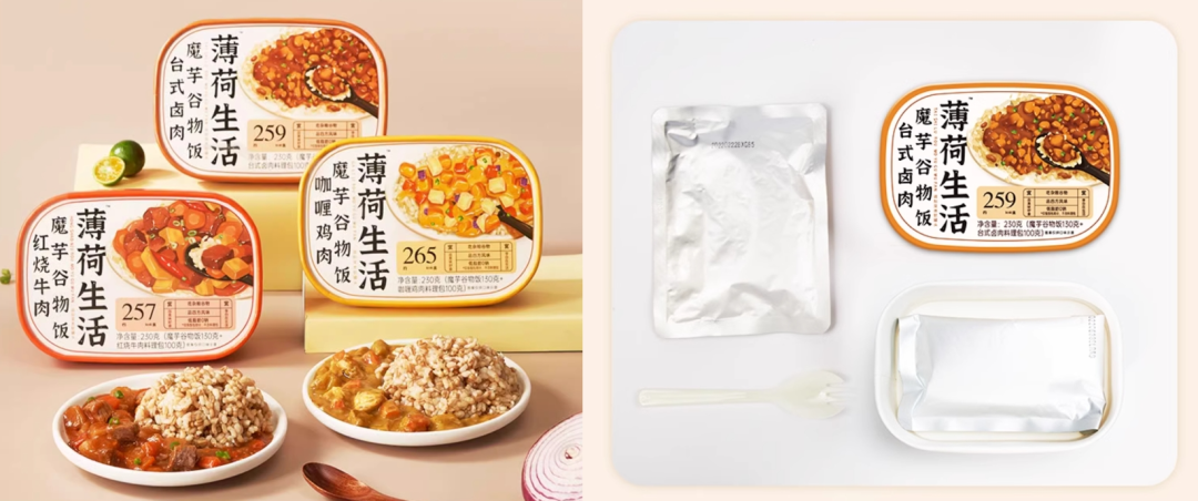 今年6月,薄荷健康推出一款极具中式特色的魔芋谷物饭,包含红烧牛肉、台式卤肉、香菇滑鸡等地道鲜香口味。这款魔芋粗粮饭低脂0钠,每盒热量控制在290大卡以下。产品还迎合当下流行的“免开火”趋势,自带可微波加热饭盒,提供更快速便携的中餐体验。