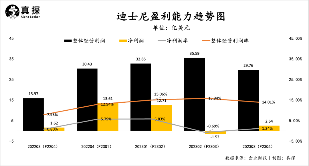 本季度,迪士尼实现营收212.41亿美元,同比增长5%,低于分析师预期的214.3亿美元,这已是连续第二次营收不如预期;2023财年营收888.98亿美元,同比增长7%;
