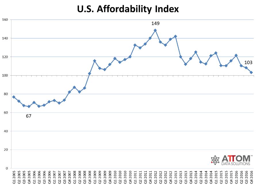 房价是在上涨,这一点不用质疑。根据美国房产网站Zillow的数据,住房价格在11月份增长了6.5%,涨幅达到2006年以来之最。联邦住房金融局的房价指数也显示,与去年同期相比,第三季度房价上涨了6.2%。如果将时间线再放长一些,2016一整年,美国房价平均比去年上涨了约5%,价格已经跟经济危机之前的峰值水平相当。