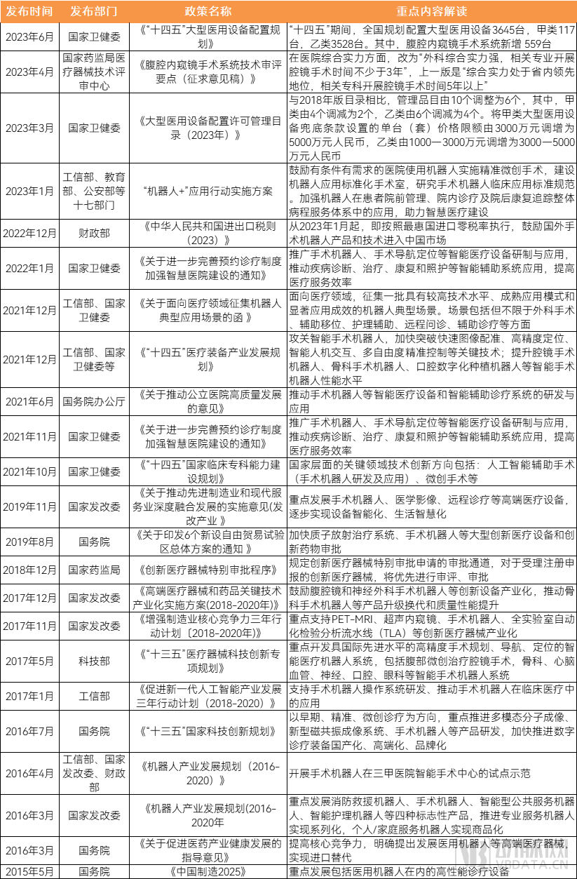图表 近年国家针对手术机器人相关的政策 图片来源:蛋壳研究院