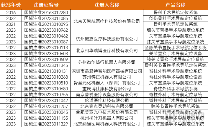 图表 国内获批骨科手术机器人盘点 数据来源:NMPA