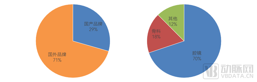 据中国招投标网,根据2023上半年(1月1日到6月30日)已公布的中标数据中,在不统计耗材和服务的情况下,国产品牌市场占比29.5%,进口品牌市场占比70.5%,其中,腔镜手术机器人占比约70%,骨科手术机器人占比约18%,具体如下: