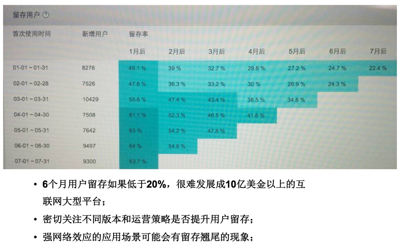 创业者一定要密切的监视这些数字,而且互联网最好的优势就是数据可以告诉你每一个版本的更新、每一个运营的变化,用户留存是不是得到了改善。