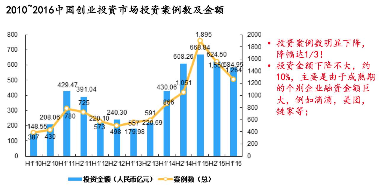 这是今年上半年的数据,投资金额降低的并不多,只比去年降低 10%。那为什么大家觉得这个市场很冷呢?因为投资的项目减少了很多,比去年上半年少了三分之一左右——大家都更不愿意出手投小项目,更愿意抱团。这个冬天更特殊一些,我觉得这个现象可能还会持续一段时间,而且因为市场上的基金非常多,今年投资项目少的话,明年的投资压力会很大——这世上钱真的非常多,但关键是这个钱能不能到你这里?这是每个创业者需要思考的问题。