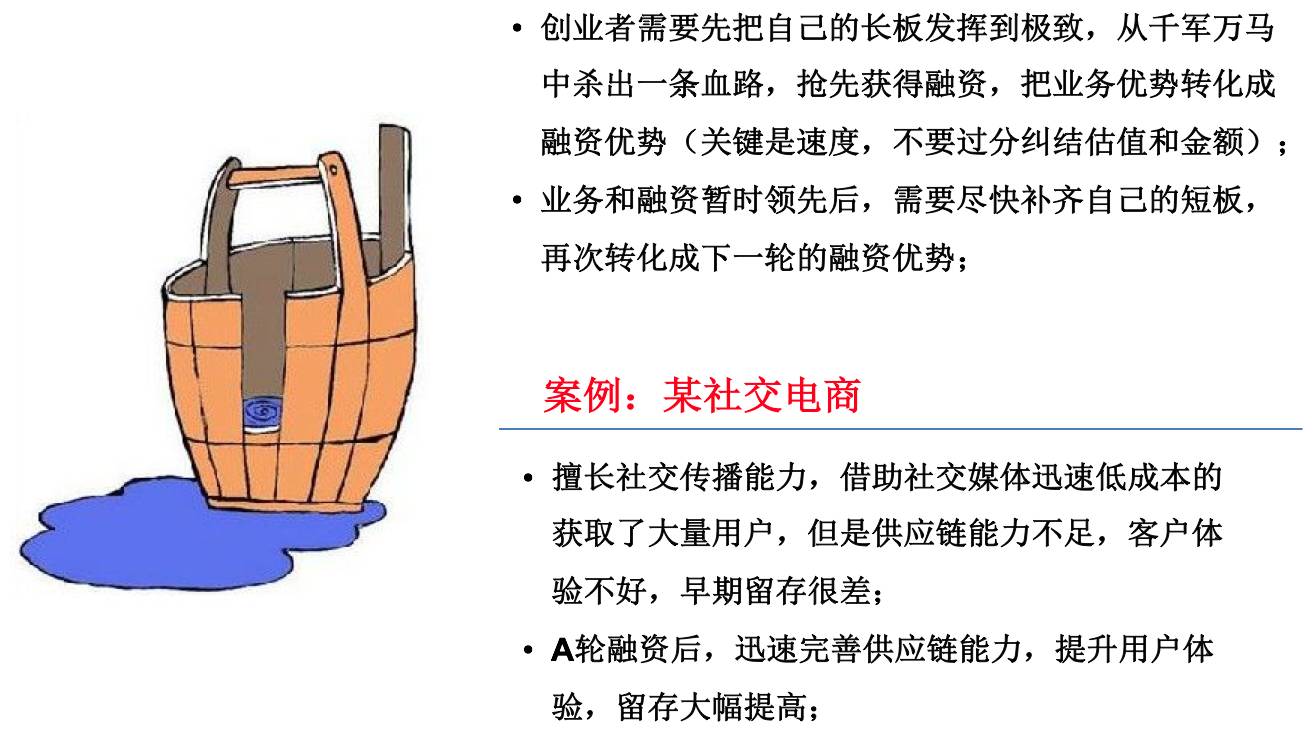而一个互联网公司创业的窗口期都有至少几十家、上百家公司在做,为什么是你能成功出来?这时候拼的不是短板,而且创业者的长板。然后把业务优势转化为融资优势,再把融资优势转化为业务优势,正向循环,就有机会进入半决赛。