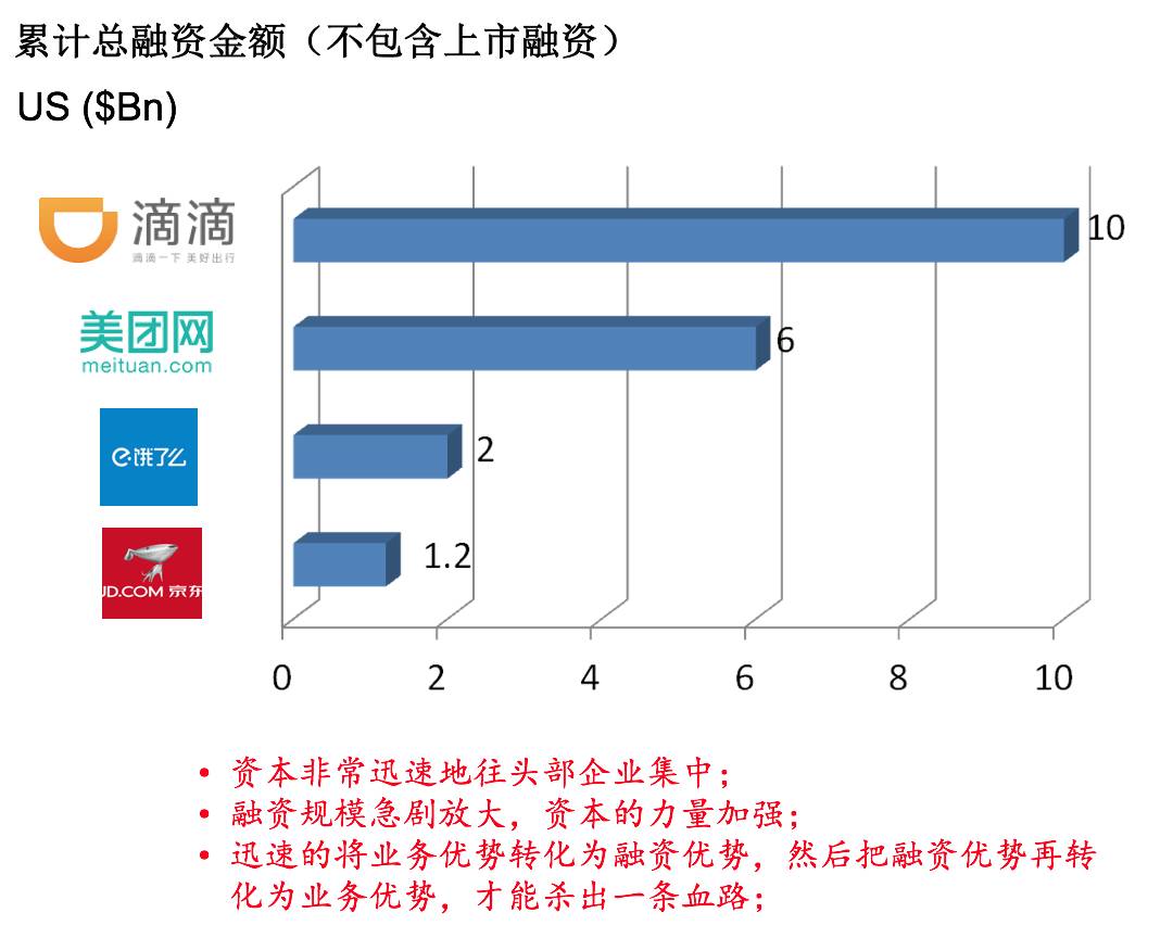 像我前面讲的,最近几年资本开始越来越强大,这确实是以前没有见到过的现象。当初像京东,京东我为什么不敢投资,就是觉得这个商业模式非常需要钱。京东在上市前一共才融了12 亿美金,但滴滴现在已经融了100 亿美金了,美团融了60 亿美金,饿了么已经融了20 亿美金,可能还要再融,资本的力量已经非常的强大。