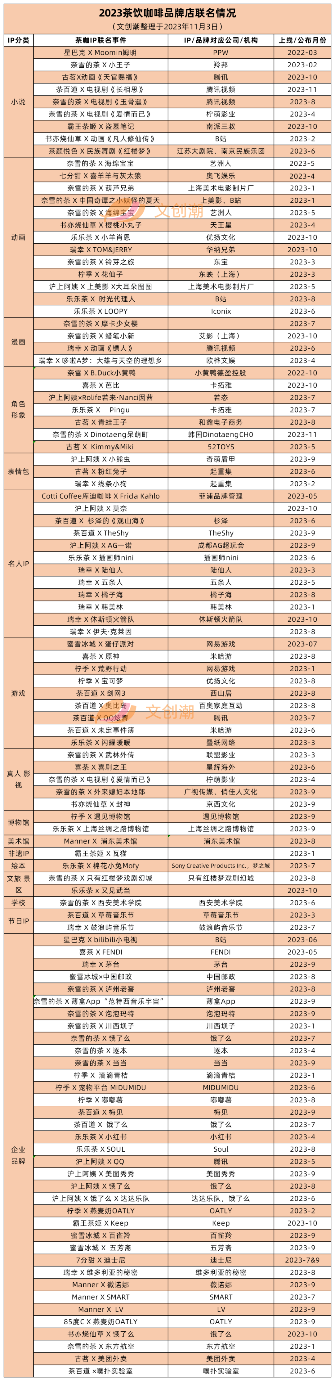 平均不到3天就有一个奶茶或咖啡品牌,推出一项IP联名、限量饮品的活动。