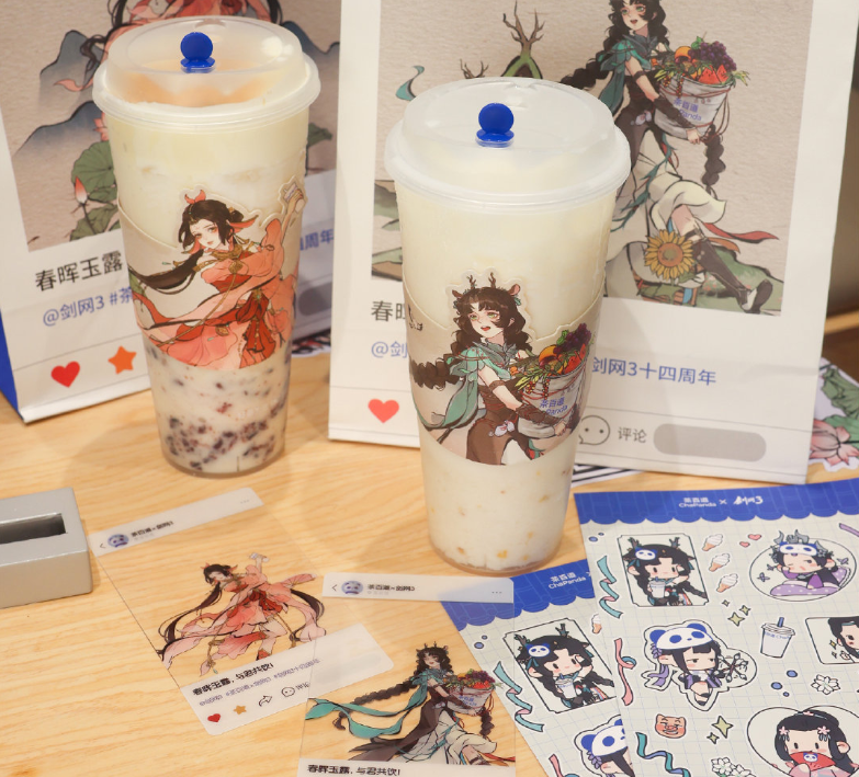 如今,新茶饮品牌和IP的双向奔赴,早已不再是简单地给奶茶套个杯套或纸袋这么简单。