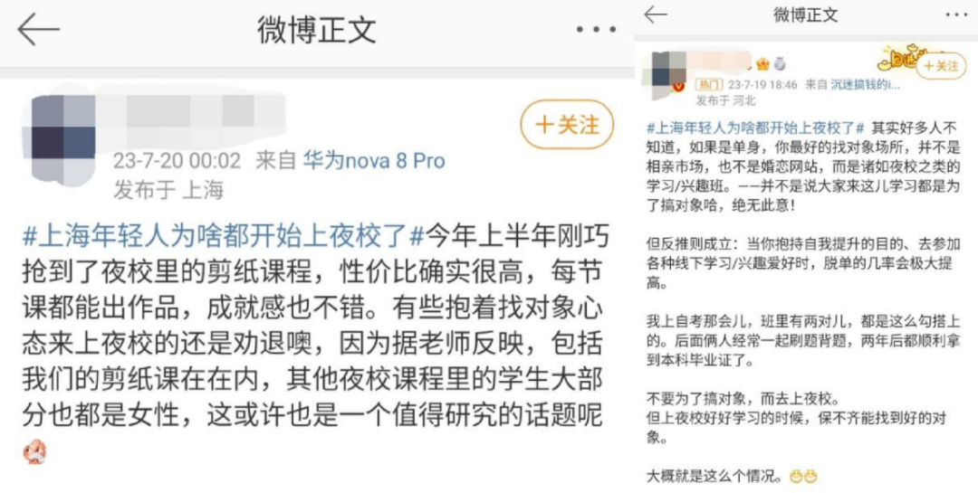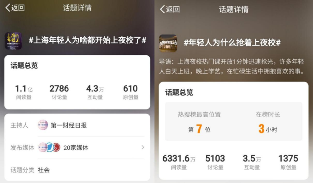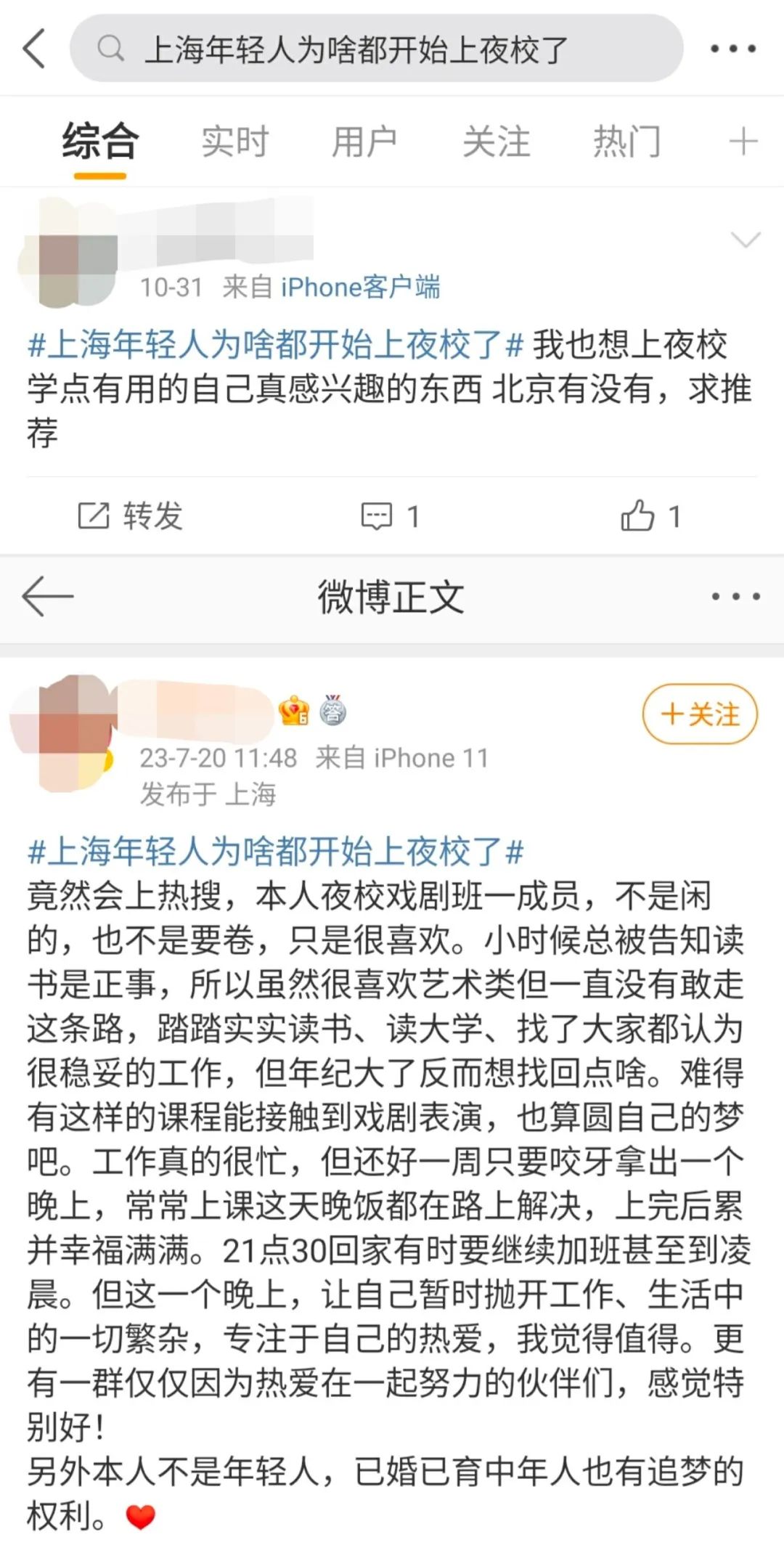 近日,央视新闻在微博发起的#年轻人为什么抢着上夜校#词条上了热搜。上一次关于年轻人上夜校的讨论还是7月份,该微博词条#上海年轻人为啥都开始上夜校了#阅读量已破亿。