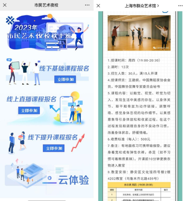 上海夜校从2016年发展至今已经7年,2018年将第一年的6门课增设到15门,并实现了生活时尚与传统文化两个版块的开发,随后持续发力,与社会优质培训机构、专业院团、院校等合作,2022年实现了线上直播课、线下课双线发展。
