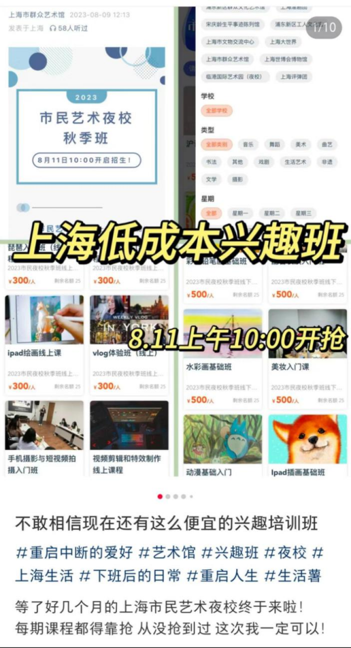 而上海市群众艺术馆能成为全国最火的公办夜校机构,正是发现了这一亟待满足的精神文化需求满足,早早布局而后厚积薄发、一鸣惊人。