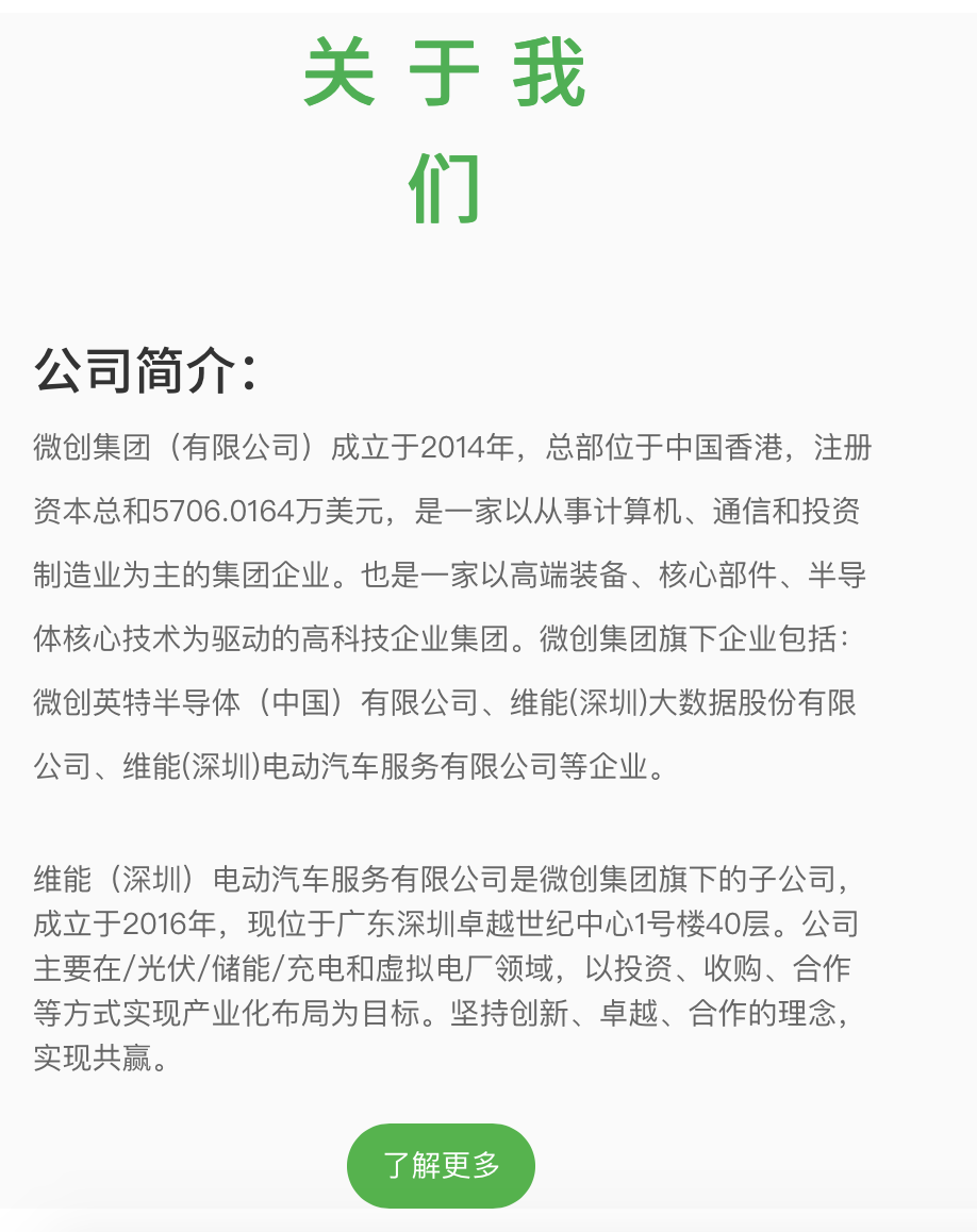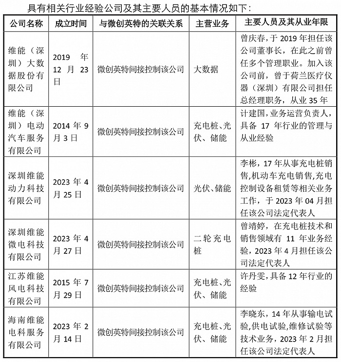 微创英特主要从事生产、研发设计半导体产品、SMD及SMT加工业务。维能(深圳)大数据股份有限公司主要从事电子产品、通讯模块、软件、电池、充电桩等的研发设计。维能(深圳)电动汽车服务限公司则是从事新能源汽车配套设施的建设及零配件的研发生产制造。