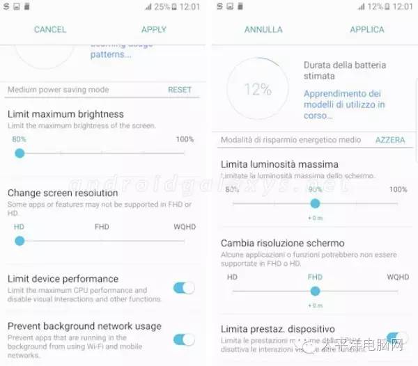 三星Note7支持更改屏幕的分辨率,调整到更低的分辨率以节省电量。从屏幕截图来看,三星Note7屏幕分辨率支持在QHD(2560 x 1440)、FHD(1920 x 1080)和HD(1280 x 720)之间进行调节。