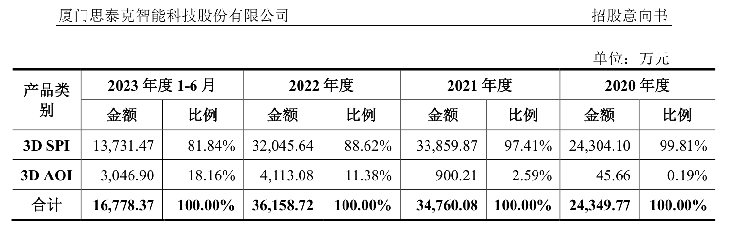 说明书显示,思泰克主营业务是机器视觉检测设备的研发、生产、销售及增值服务,是一家具备自主研发和创新能力的国家高新技术企业。公司的主要产品包括3D锡膏印刷检测设备(3D Solder Paste Inspection,简称3D SPI)及3D自动光学检测设备(3D Automatic Optic Inspection,简称3D AOI),主要应用于各类PCB(Printed Circuit Board的简称,即印制电路板)的SMT(Surface Mounted Technology的简称,即表面贴装技术)生产线中的品质检测环节,终端产品领域覆盖广泛,包括消费电子、汽车电子、锂电池、半导体、通信设备等行业应用领域。