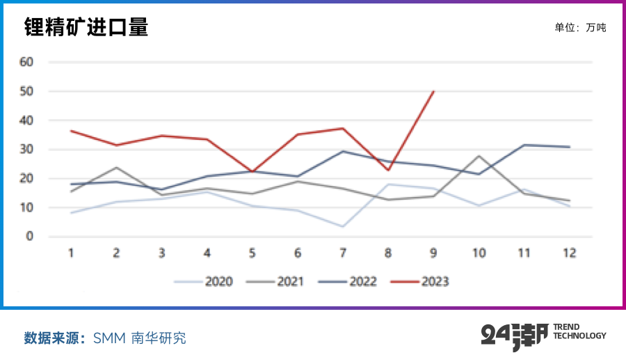 另一则数据显示:2023年9月,中国碳酸锂进口量重新呈现增长趋势,达到了自4月以来的新高。据海关总署公布的数据,9月中国碳酸锂的进口量为1.37万吨,比上个月增加了25.9%,与去年同期相比也增加了9.0%。