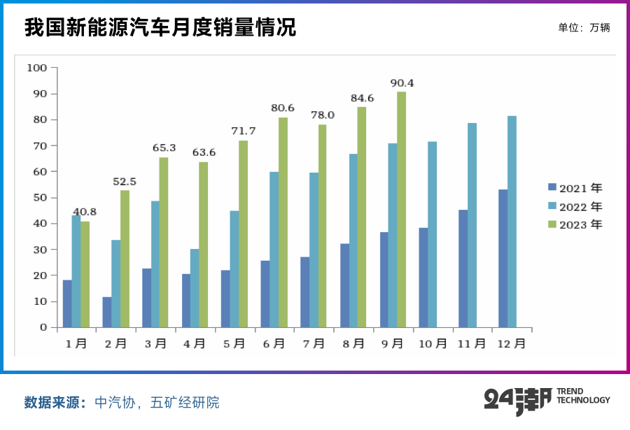从全球角度看,欧洲市场增速也可能出现进一步放缓。根据五矿经研院的数据,欧洲市场去年四季度基数较高,加之德国8月 “抢补贴” 行情过后,后市可能会受到补贴退坡的冲击,对增长形成一定拖累。即便考虑法国加补贴因素,预计四季度欧洲新能源汽车销量同比增速将回落至25%左右。