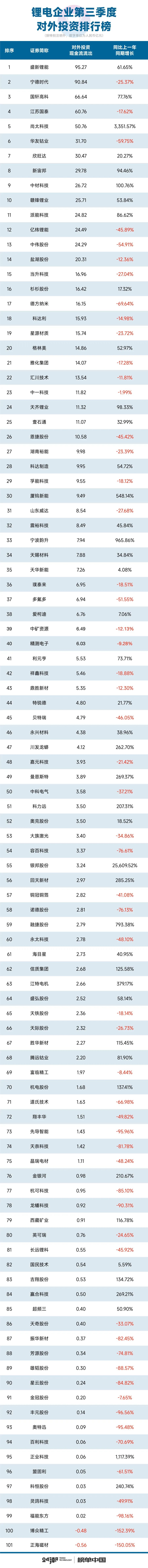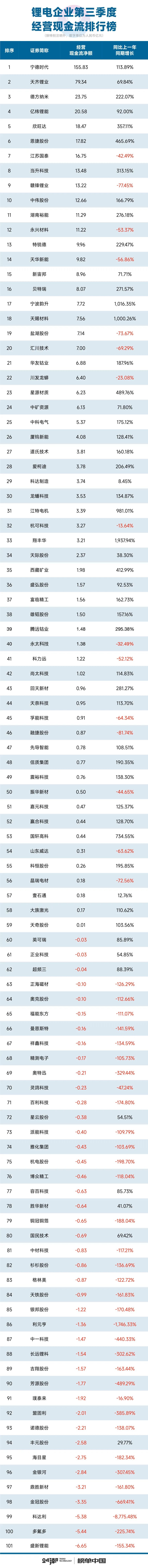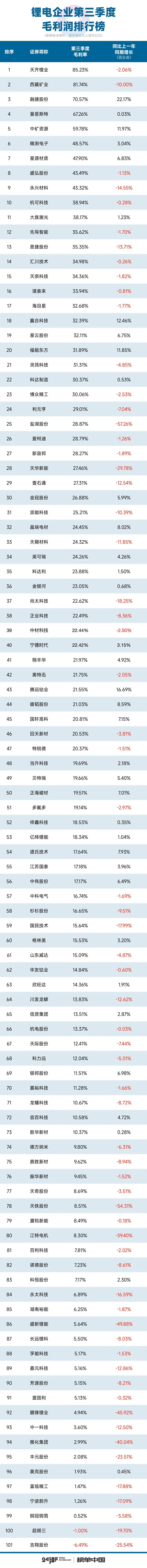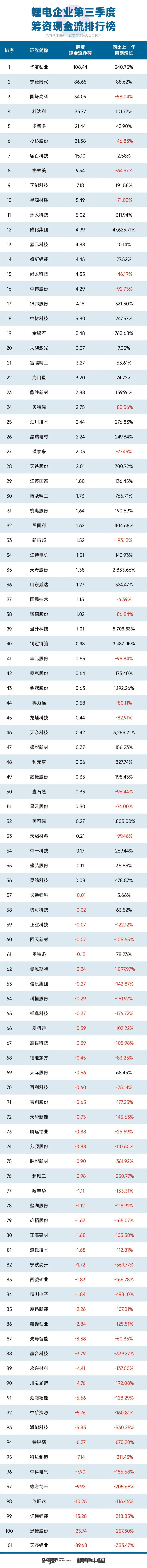 24潮统计数据显示,当前产业形势确实不容乐观:第三季度(7-9月)101家锂电公司整体营业收入同比上一年同期下降了4.97%,整体毛利率水平下降了3.52个百分点,归母净利润降幅达48.84%,净筹资规模(现金流)降幅达71.46%,对外投资(现金流)下降9.01%。