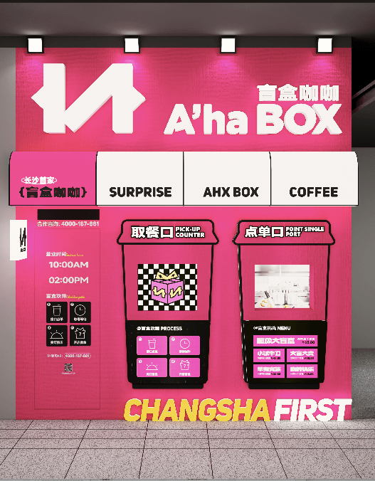 今年夏天,盲盒咖咖成为年轻人的新宠。以Aha Box盲盒咖啡为例,2023年5月在长沙开出首店后,迅速蹿升至抖音长沙吃喝玩乐榜收藏第一,热销第二,日均营业额3w+。观察Aha Box盲盒咖啡在抖音生活服务的玩法,更多的是用探店类短视频内容积累粉丝。一方面,“咖啡+盲盒”的cp能打破固有圈层,扩大受众群体;另一方面,视频中玫红色的门头、游戏机的窗口设计,加上开盲盒的刺激感,强拔草性质的内容让屏幕前的用户产生尝鲜冲动。相似的盲盒咖啡品牌还有I'M FUN盲盒饮像厅、DEAR BOX盲盒咖啡等,也都是通过“盲盒+”的潮流玩法触达更多年轻人,从而撬动来自不同圈层的增量市场。