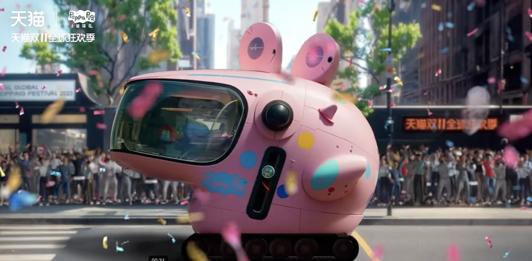 “双11”前夕,天猫市场部找到了独立的创意热店TIMA,提出“希望跟上AI热点,以AIGC为核心制作出一条创意短片。”在多轮创意提报后,TIMA团队选择了用AI花车巡游的概念,来制作本次天猫双11的品牌片。