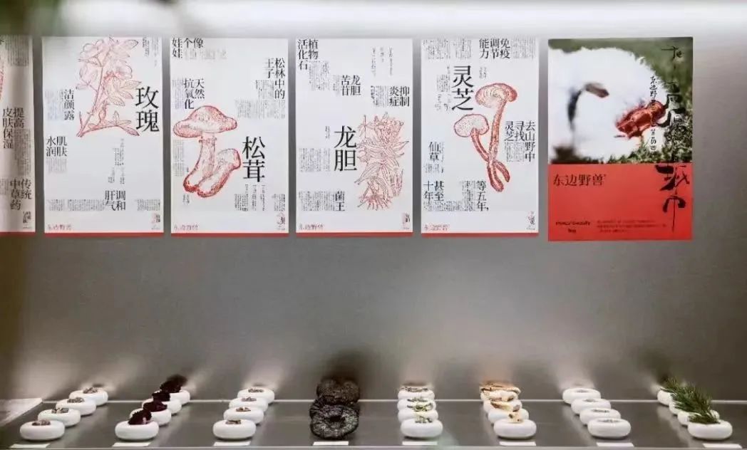 举例来说,东边野兽将品牌与东方文化的交叉点落在中国草药身上,在产品中添加了包括来自云南西北隅迪庆州高原深处的松茸、大别山金寨的灵芝、澜沧江普洱、大理洱源高原墨红玫瑰、以及三江并流腹地的青稞等等。