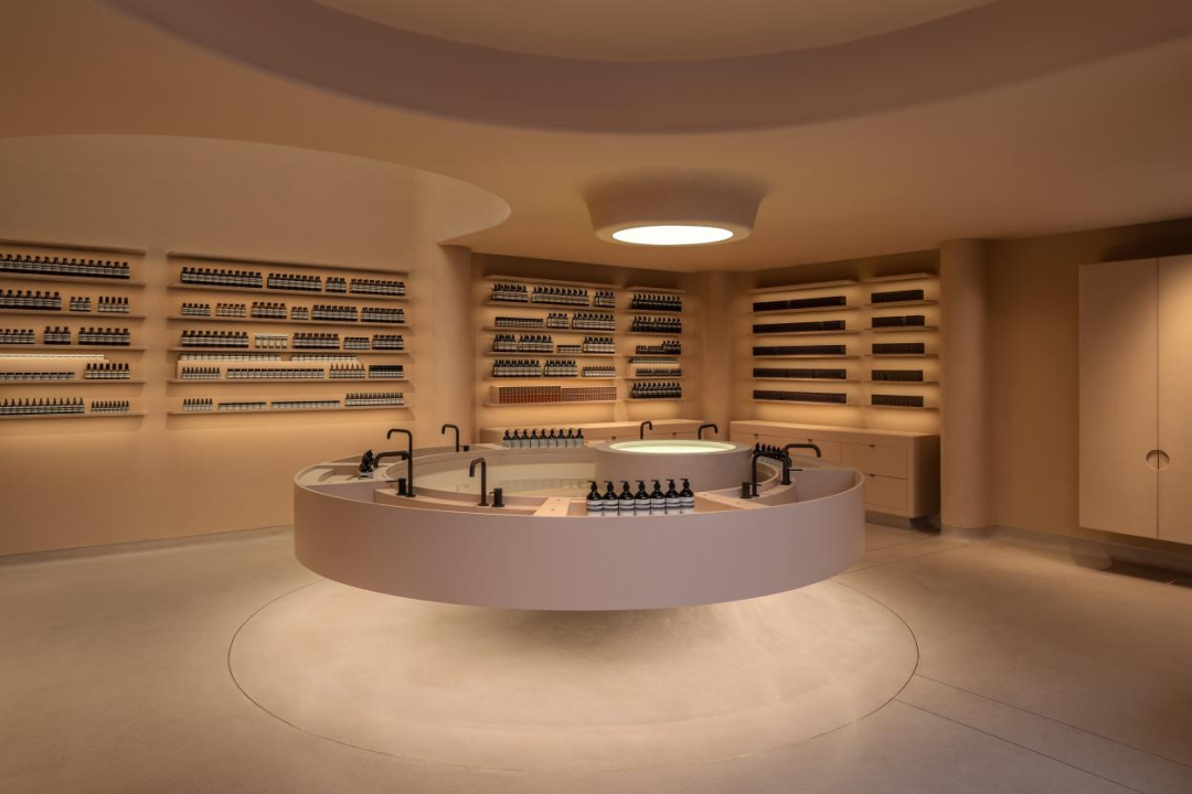 每一间Aesop伊索门店都拥有独一无二的故事,包括设计师、特点和材料、当地文化等等。Aesop伊索洛杉矶世纪城店,用3942块弧形蔚蓝色陶瓷砖片来呼应郊区常见的后院泳池;伦敦里士满店则暗含了英式幽默的朴素家居风格。