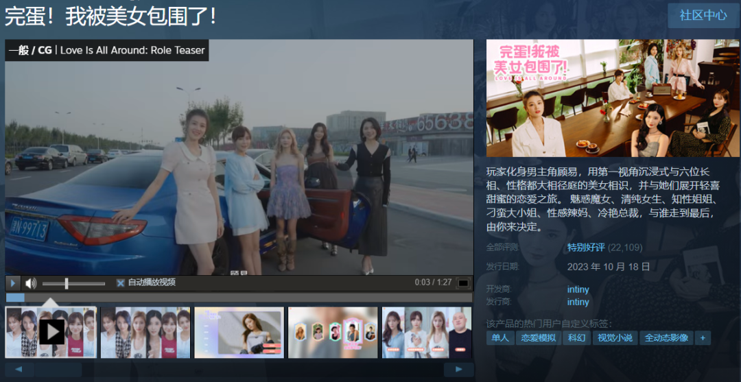 这几天关注度最高的游戏当属《完蛋!我被美女包围了》。这是一款模拟恋爱的真人互动视频游戏,玩家将化身主角与六位美女谈恋爱。游戏的主体部分则是主角视角下这六位美女的特写视频。