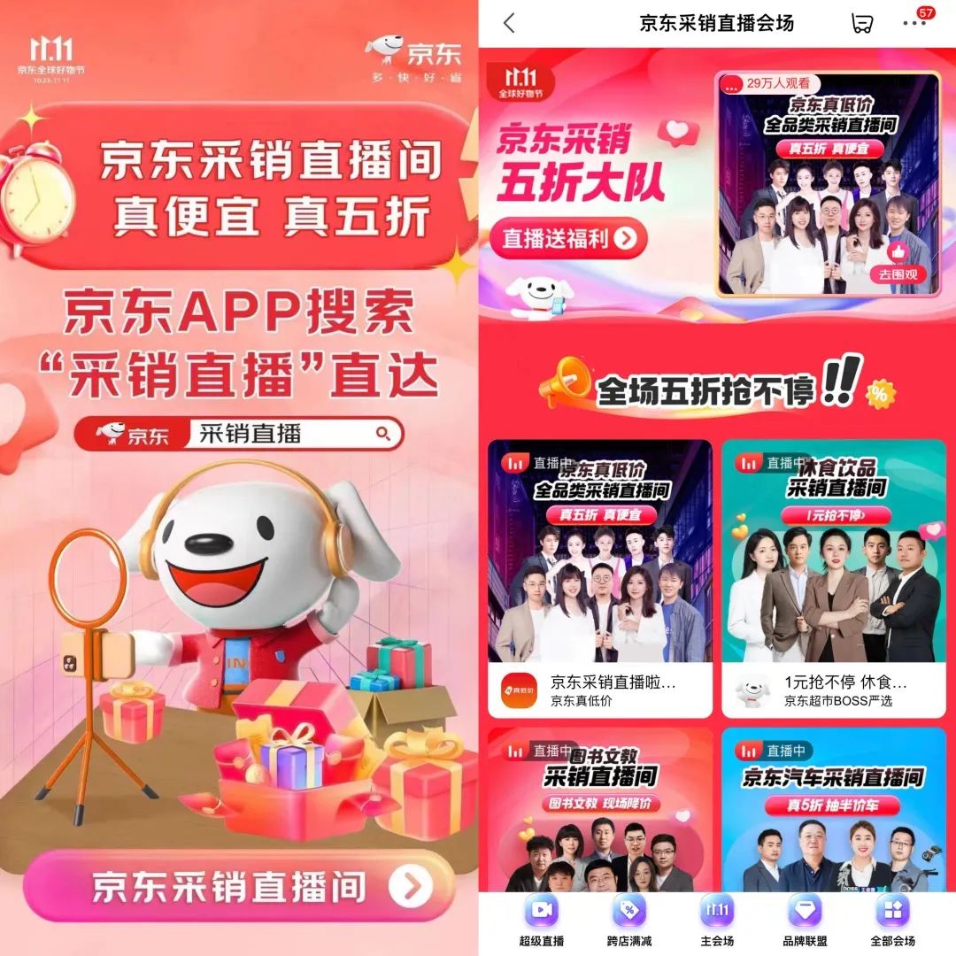 “京东采销”这一概念火了之后,以此为名的直播间也跟着开了起来。由于准备仓促,京东采销直播间的主播都不是专业人员,直播间的布置也非常简单。但直播间的title是“11.11真便宜 价低李佳琦直播间”,主打比李佳琦直播间便宜,还抽了一万支花西子眉笔。