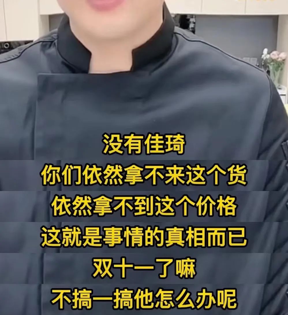 他在直播时表示,“没有李佳琦你们依然拿不来这个货,依然拿不到这个价格。双十一了嘛,搞一搞他,平台之间的竞争,大家把李佳琦当成了几个平台之间竞争的牺牲品而已。”