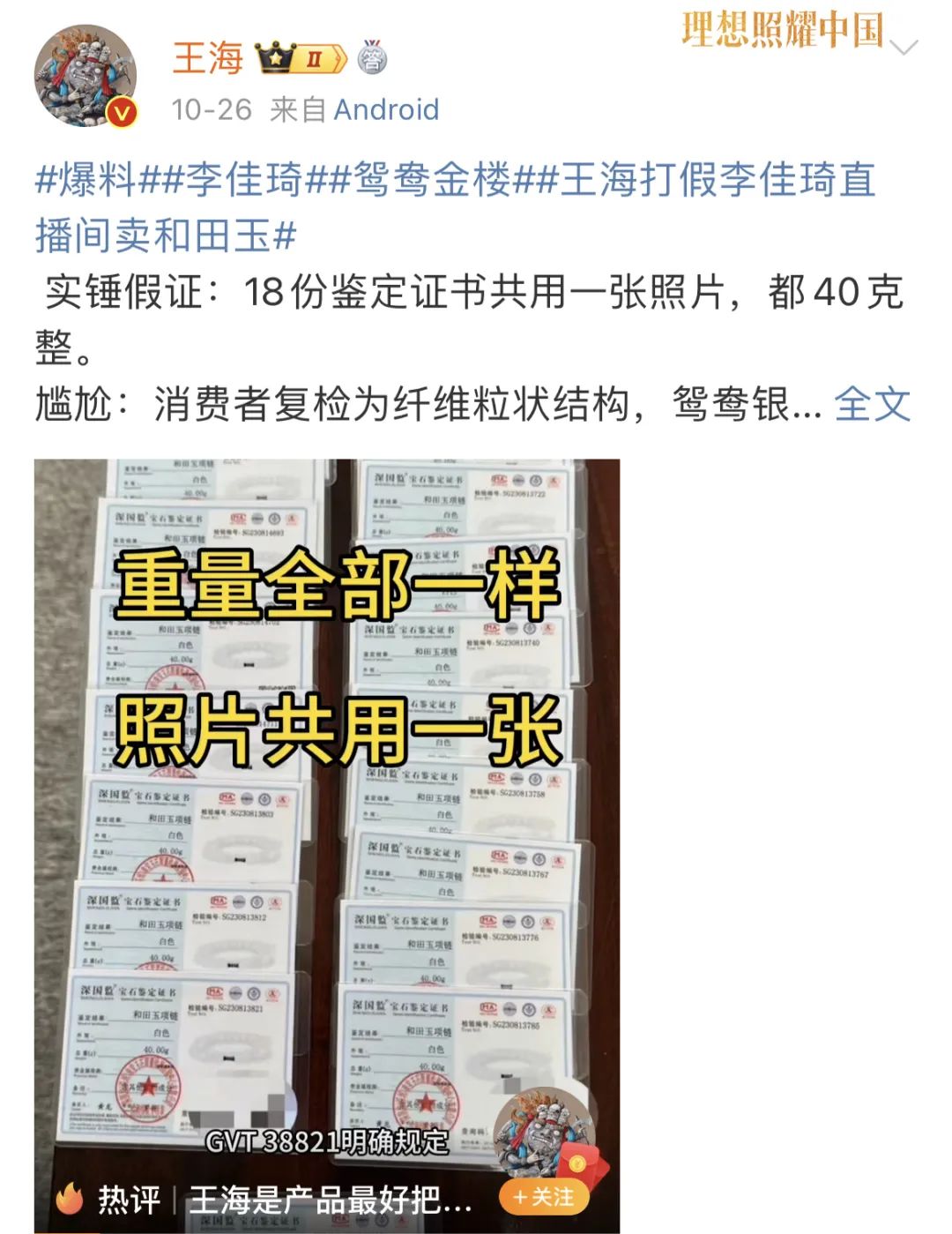 至于此前多次质疑辛巴的职业打假人王海,此次则是质疑李佳琦直播间的和田玉项链疑似伪造,不过后续争论主要围绕品牌方进行,李佳琦置身事外;11月初,一则刑事判决书公布,显示美腕一招商专员利用职务便利收受商家好处费百万余元,随后美腕发声明回应,该事件起于2022年,并强调“美腕招商选品流程不存在绿色通道”。
