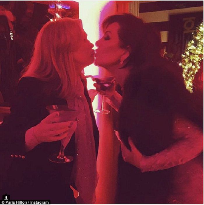 在一张照片中,克里斯·詹纳和凯西手持酒杯并且做出亲吻状,这张照片被标注为“性感的妈妈们”。在另一张照片中,希尔顿姐妹和科勒·卡戴珊一道微笑留念。