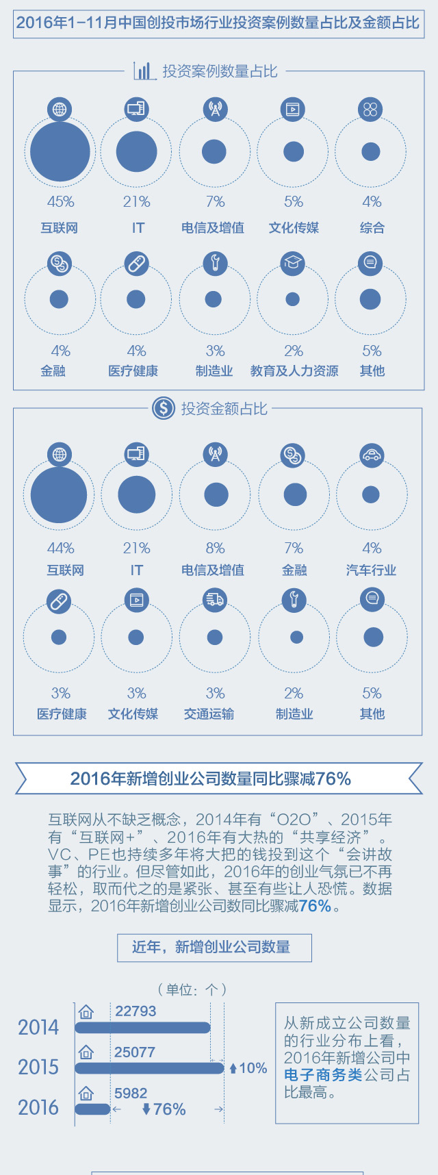 【图解】2016年新增创业公司数量骤降76% VC PE仍爱互联网