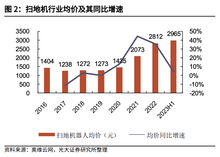 2022年底以来,扫地机行业开始“以价换量”。一个例证是,根据国信证券,扫地机行业销量增速,开始反超销售额增速。