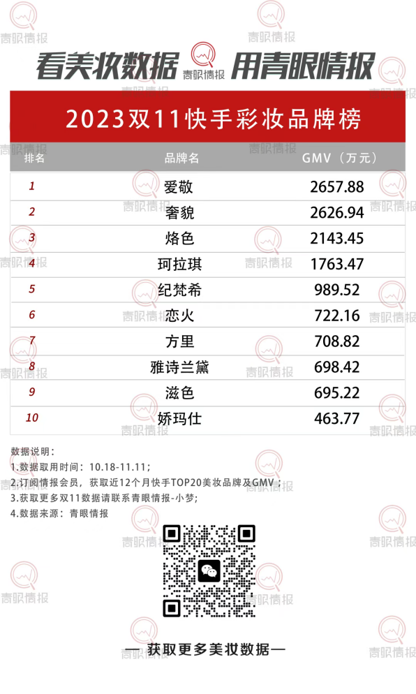 快手平台更是国货彩妆的天下,TOP3品牌中奢貌、烙色两大国货品牌GMV增幅均超2000%。上榜大部分品牌GMV增幅均超过200%。