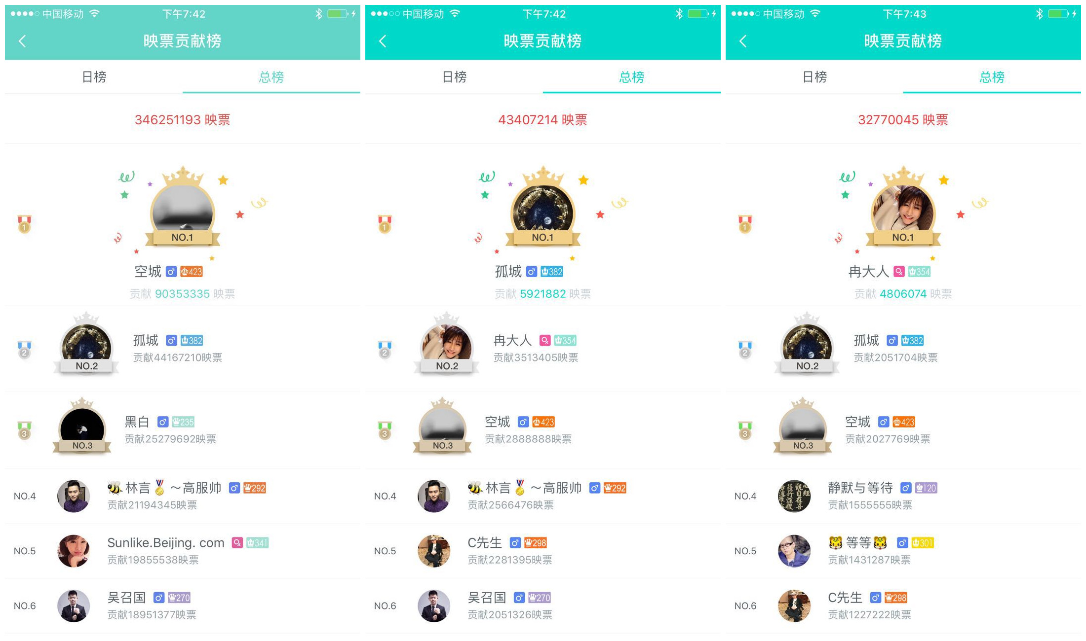 下边是冉大人、等等、吴召国的打赏收入榜截图。