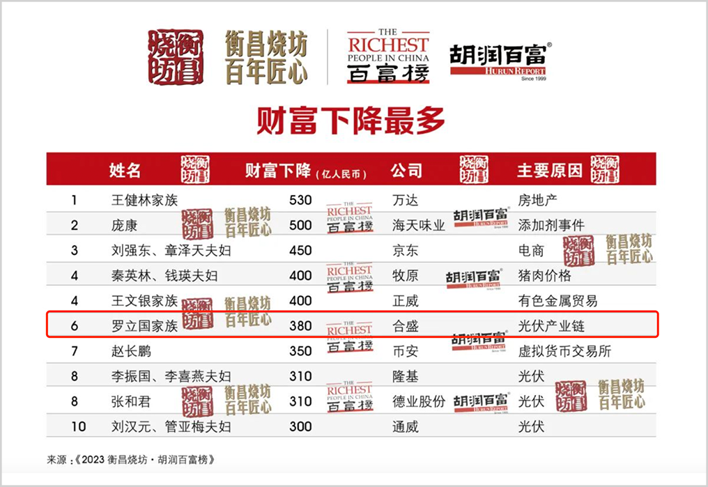 如今合盛硅业总市值仅剩下665亿,两年时间没了近2000亿,罗立国家族的身价因此骤然缩水。根据最新发布的2023胡润百富榜,罗立国家族目前财富值来到600亿元,同比下降380亿元,排名也掉了31位。