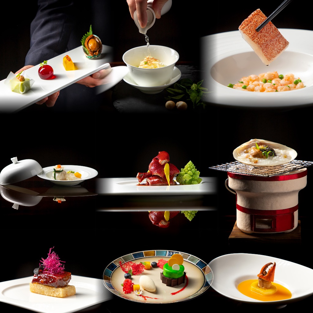 茶言悦色,红茶鹅肝,绿茶雪蟹冻,茶香鲜鲍,松萝红柚蚕豆,一盘尝尽茶食的百般滋味。祁门红茶牛小排精选优质祁门红茶与肋排肉烹调,耗时颇久熬煮而成。口感酥软香鲜、茶香清爽浓郁。黄芽河虾东星斑加入黄芽烹饪,茶味不仅解腻去腥味,还使肉质也更加香嫩。味道清雅,食之不腻。六安瓜片焖乳鸽精选六安瓜片与高品质的乳鸽焖煮,茶油与绿茶汤一起炒香垫底,口感香鲜软嫩,让人难以拒绝。岳西翠兰问政笋笋嫩味鲜,烧制完成后倒入岳西翠兰所泡的茶水,脆嫩可口的山笋与淡雅的茶香合二为一,别具一格。秋收什锦素福袋搭配清甜的素菜馅,再用晶莹剔透的豆腐皮包裹,满满时蔬,口口皆满足。时雨茶汤海鲜粥在传统海鲜粥的熬制中加入安徽茗茶茶水。海鲜爽脆弹牙、胶质感满满。口感上稠而不黏,新鲜又甘甜。太平猴魁鲜慕斯口味以茶味为主调,苦甜适中,入口层次丰富。