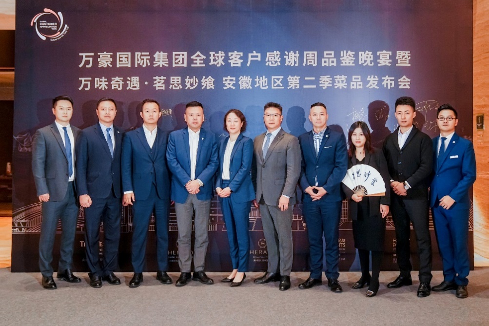 2023年11月10日,万豪国际集团全球客户感谢周品鉴晚宴暨万味奇遇·茗思妙飨安徽地区第二季菜品发布会于合肥富力威斯汀酒店华彩落幕,两个城市5家万豪国际集团旗下安徽地区酒店约30位宾客受邀出席。合肥富力威斯汀酒店、合肥新站利港喜来登酒店、滁州港汇喜来登酒店、合肥绿地福朋喜来登酒店、合肥包河福朋喜来登酒店共同携手举办了此次品鉴晚宴。