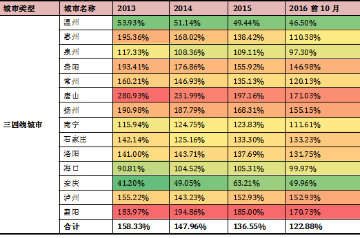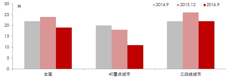 1.从库存消化周期来看,40个重点城市库存消化周期下降非常明显,到2016年9月底,整体已经降至11个月,较2014年水平下降大约一半。其中限购升级的20个城市下降更为明显,目前仅为6个月。可以说去库存任务基本完成。