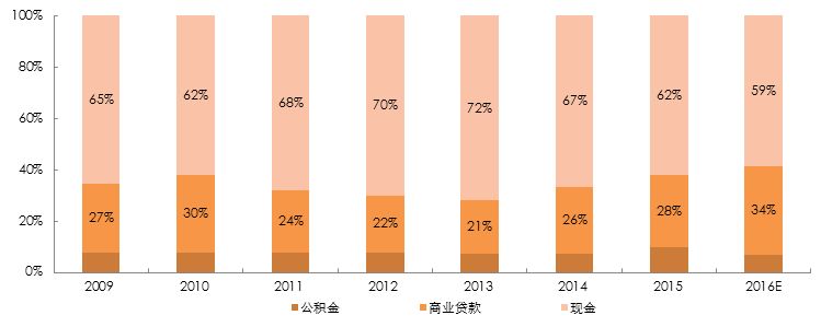 “加杠杆”是2016年楼市的热点话题之一。讨论之前,同样需要明确一下定义。我们把购房资金中,非自有资金(包括银行购房贷款、公积金贷款)的比例称之为杠杆率。