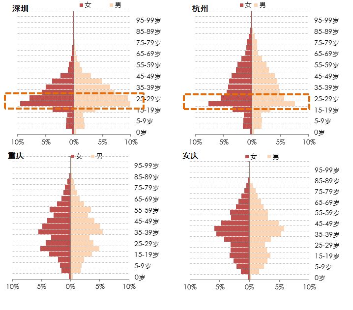所谓人口质量,在房地产需求范畴,主要指的是年轻人口的占比。因为目前购房主力人群集中在30岁左右,而改善购房集中在40-50岁。因此,年轻人口比重高的城市不仅住房刚需稳定,在10-20年后还有稳定的改善性需求。