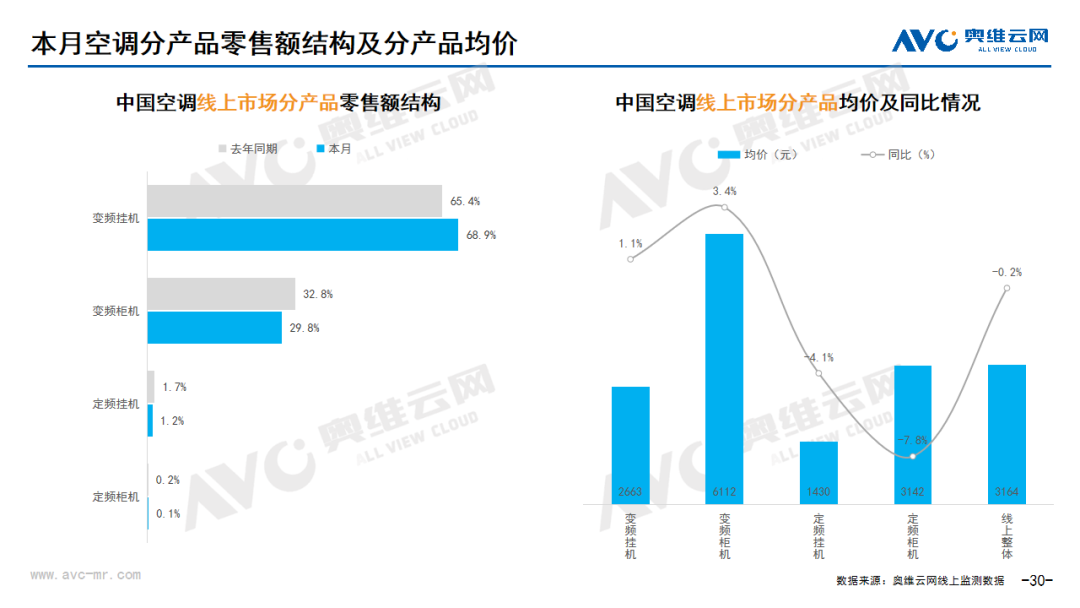 小家电:据奥维云网(AVC)线上市场监测数据显示,本月小家电线上零售额规模同比1.5%;均价为194元,同比1.7%;高端品零售额占比3.3%,同比0.4%。