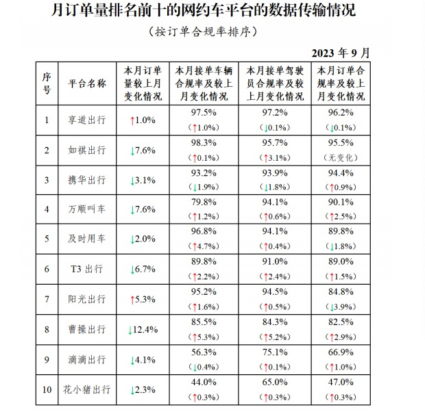 而中国交通运输部发布的《2023年9月份网约车行业运行情况》显示,截止9月30日,全国共有330家网约车平台公司取得网约车平台经营许可,环比增加3家;各地共发放网约车驾驶员证618.8万本、车辆运输证263.5万本,环比分别增长2.1%、2.5%。而网约车监管信息交互系统9月份共收到订单信息7.93亿单,环比下降3.9%。